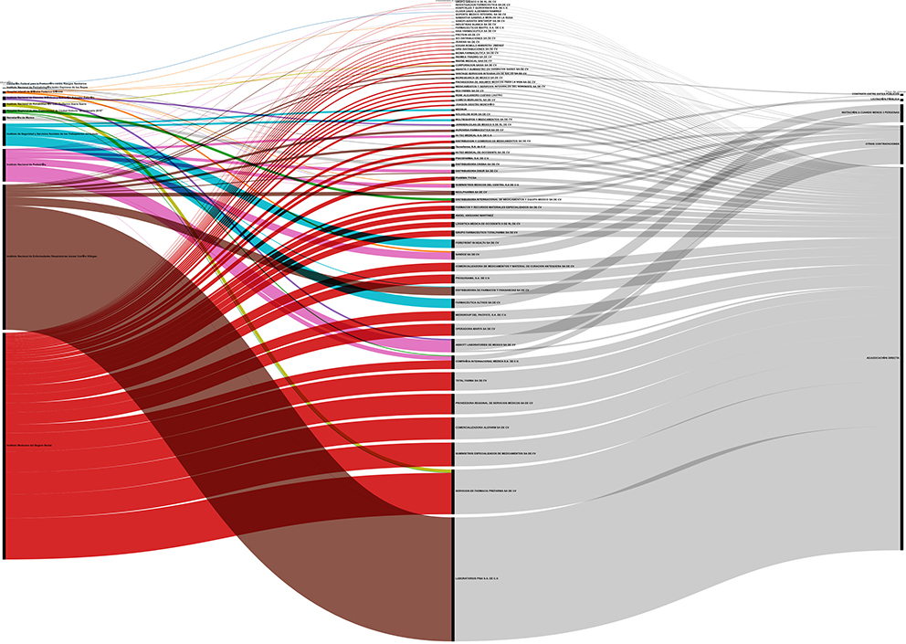Las dependencias de gobierno que más utilizaron el procedimiento de contratación por Adjudicación Directa fueron el Instituto Nacional de Enfermedades Respiratorias Ismael Cosío Villegas y el Instituto Mexicano del Seguro Social, también son los organismos con mayor gasto para estas Claves de Medicamento. El motivo por el cual las autoridades utilizaron principalmente este procedimiento no es público. PODER solicitó entrevista con la Secretaría de Salud, sin embargo, hasta el momento del cierre de esta edición no tuvimos respuesta.