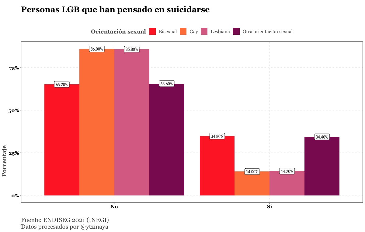 – El 14.2% de las mujeres lesbianas en México han pensado en suicidarse.