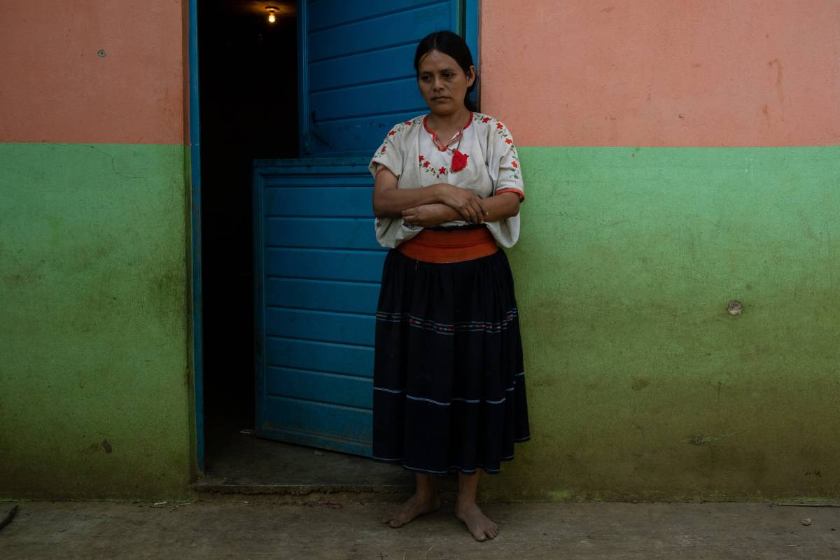 Claudia vivía con tranquilidad atendiendo una pequeña tienda hasta que la situación de violencia la atravesó. Su vivienda está en la zona de tiro de quienes disparan y su cuñado, Cristóbal Sántiz Jiménez, fue encarcelado. Eso la impulsó a convertirse en un vínculo para operar procesos comunitarios con mujeres. Confiesa que la situación de amenaza en la que viven le dio soltura en su palabra y de a poco fue perdiendo el miedo a hablar en público y manifestar el sentir de las mujeres.