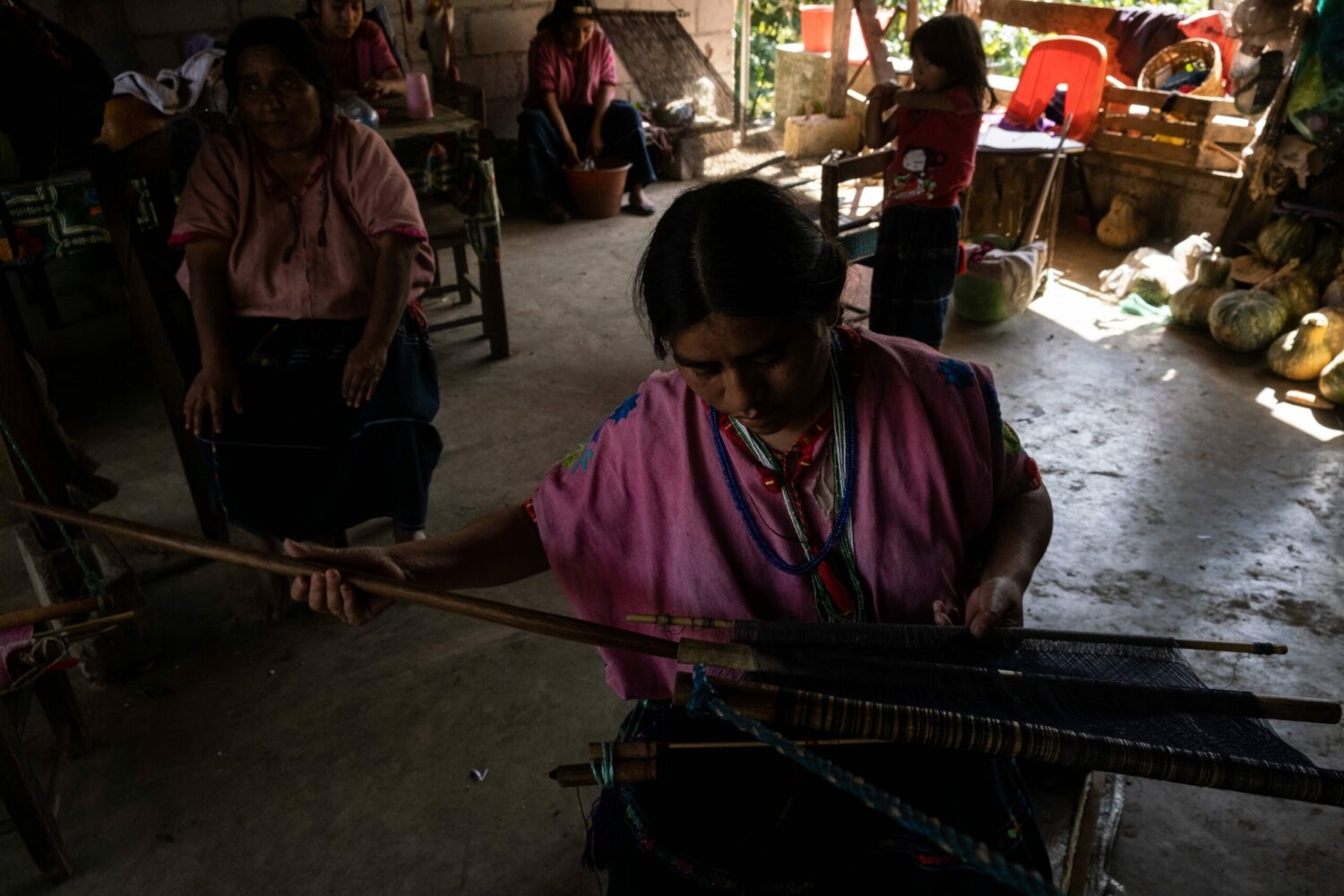 Sus hijas ya son unas adolescentes y juntas crearon un entorno de autoprotección y cuidado. Por las habitaciones de ventanas y puertas abiertas, instalaron telares que ahora son su medio de sustento. Las puntadas cuidadosamente elaboradas hablan de concentración y paciencia. Martha y su esposo salen de sus vivienda para buscar trabajo como jornaleros agrícolas y con esos recursos compran hilos con los que elaborarán las prendas para vender. Ya no tienen los terrenos, pero tienen su arte que les permite subsistir. “Está la tristeza quizás un poco menos porque ya estoy un poco lejos, como que ya no hay mucho miedo a comparación de cuando fue ese día que me sentí pequeña”, dice refiriéndose al día en que quemaron su casa.
