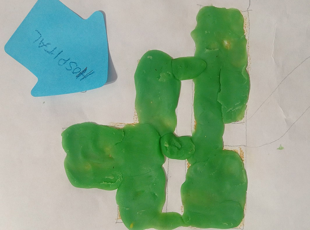 Celeste dibujó el hospital, el cual visita de manera frecuente por una enfermedad respiratoria que padece.