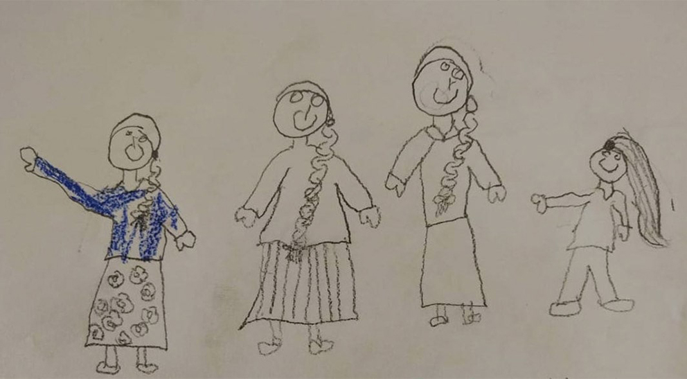 Cuando salieron desplazados Celeste tenía tan solo 7 años, hoy recuerda perfectamente el aroma de los pinos de la Sierra Tarahumara, los animales, la leña, y sobre todo las noches, así lo compartió mientras dibujaba.
