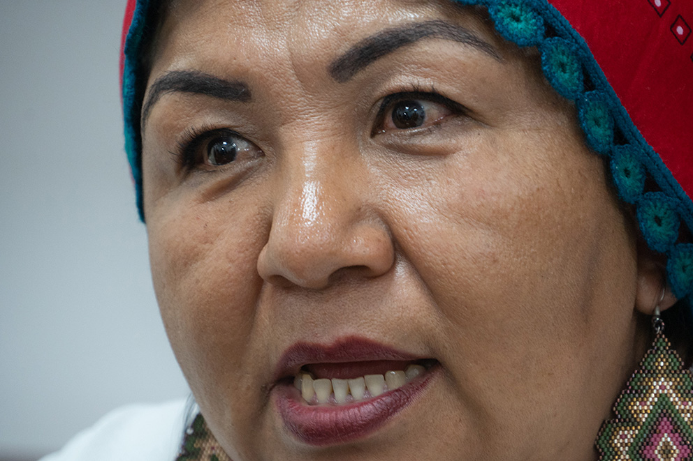 —No, de hecho, hace un momento alguien me decía: ‘yo he hecho estudios en este tema de la discriminación, el tema de las mujeres’. Y le dije: ‘bueno, tú la has estudiado, yo la he vivido y la he enfrentado y por eso estoy aquí’. Se que encontraré a las personas adecuadas que me ayudaran a analizar la situación y que juntos encontraremos la forma para poder abordarla. Y la crítica es buena también, aunque no sea constructiva, te hace ubicarte también en donde estás… No, no tengo miedo, venir de un pueblo originario y ser líder, me da la fortaleza para estar aquí.