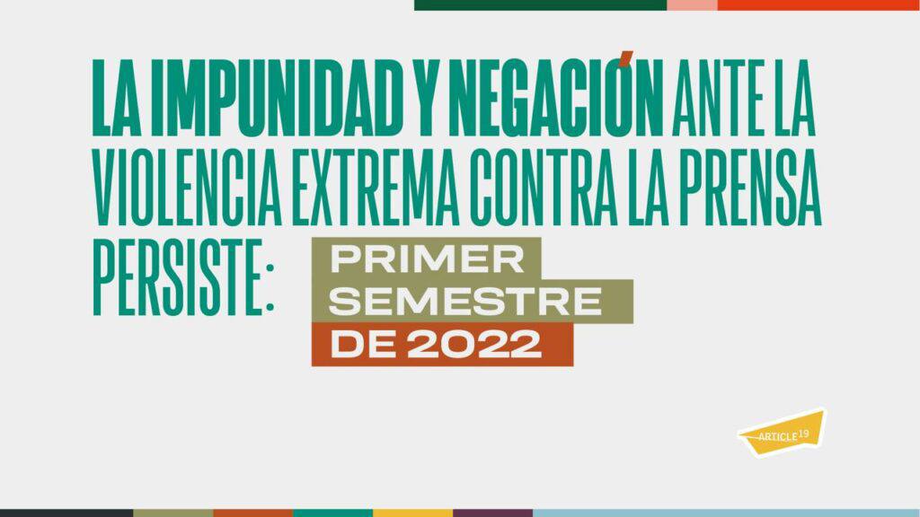 En México prevalece un ambiente de “impunidad y negación” ante la violencia extrema que se comete todos los días en contra de las personas periodistas, afirma Artículo 19 en el reciente informe que hicieron público sobre el balance del primer semestre de 2022. El documento revela que se perpetraron al menos 331 agresiones, lo que implica que cada 14 horas una persona periodista o trabajadora de los medios de comunicación recibió un atentado por el ejercicio de su labor informativa entre enero y junio de 2022.