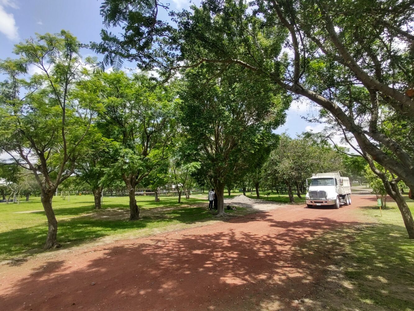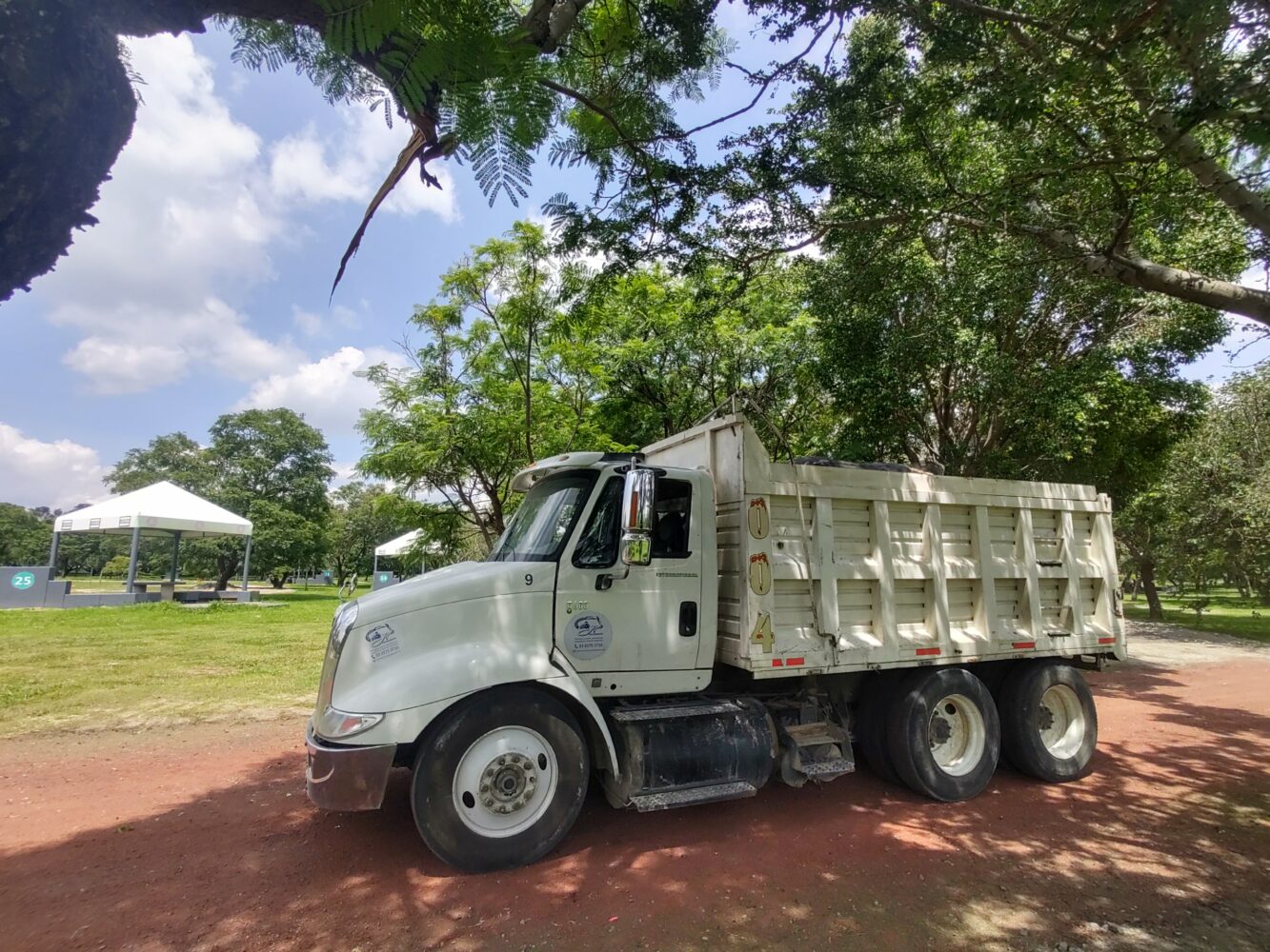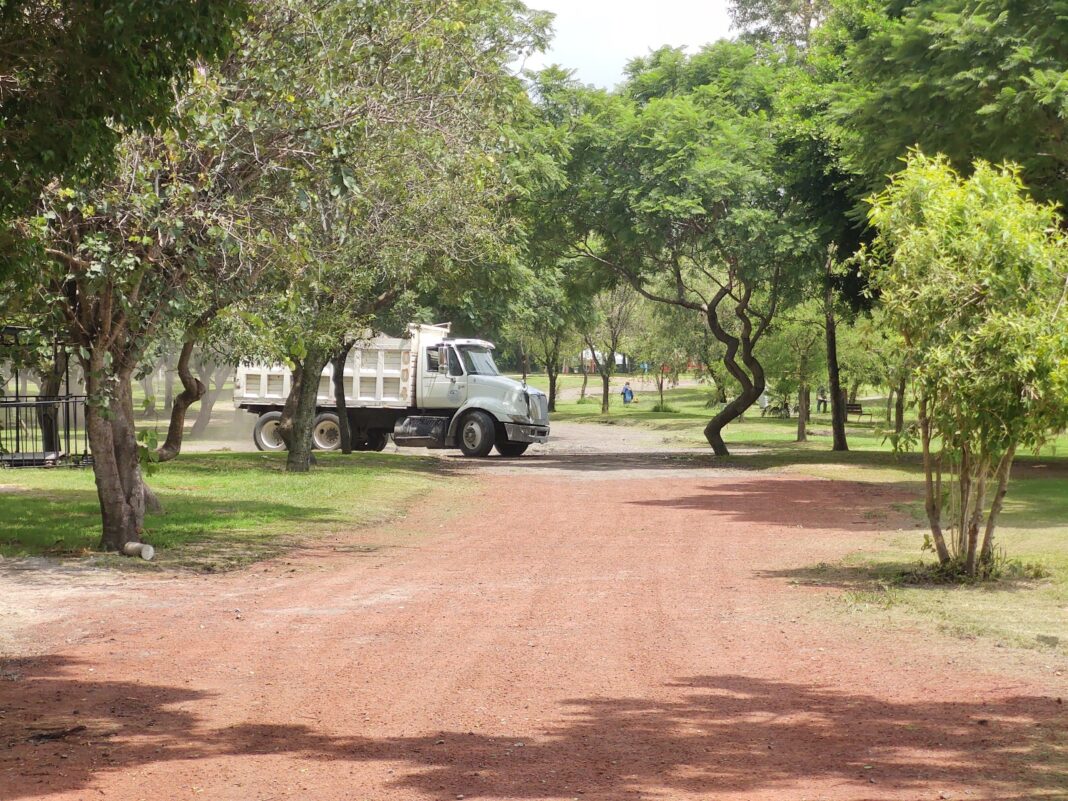 En cuanto a los daños que denuncia el colectivo, Zona Docs pudo constatar la instalación de tres castillos de andamios, el recubrimiento de dos caminos del parque con impermeabilizante similar al asfalto, golpes y mutilaciones en algunos de los árboles ocasionados por el paso de maquinaria y camiones de volteo, y evidencias de disposición ilegal de escombros dentro de un canal natural del parque.
