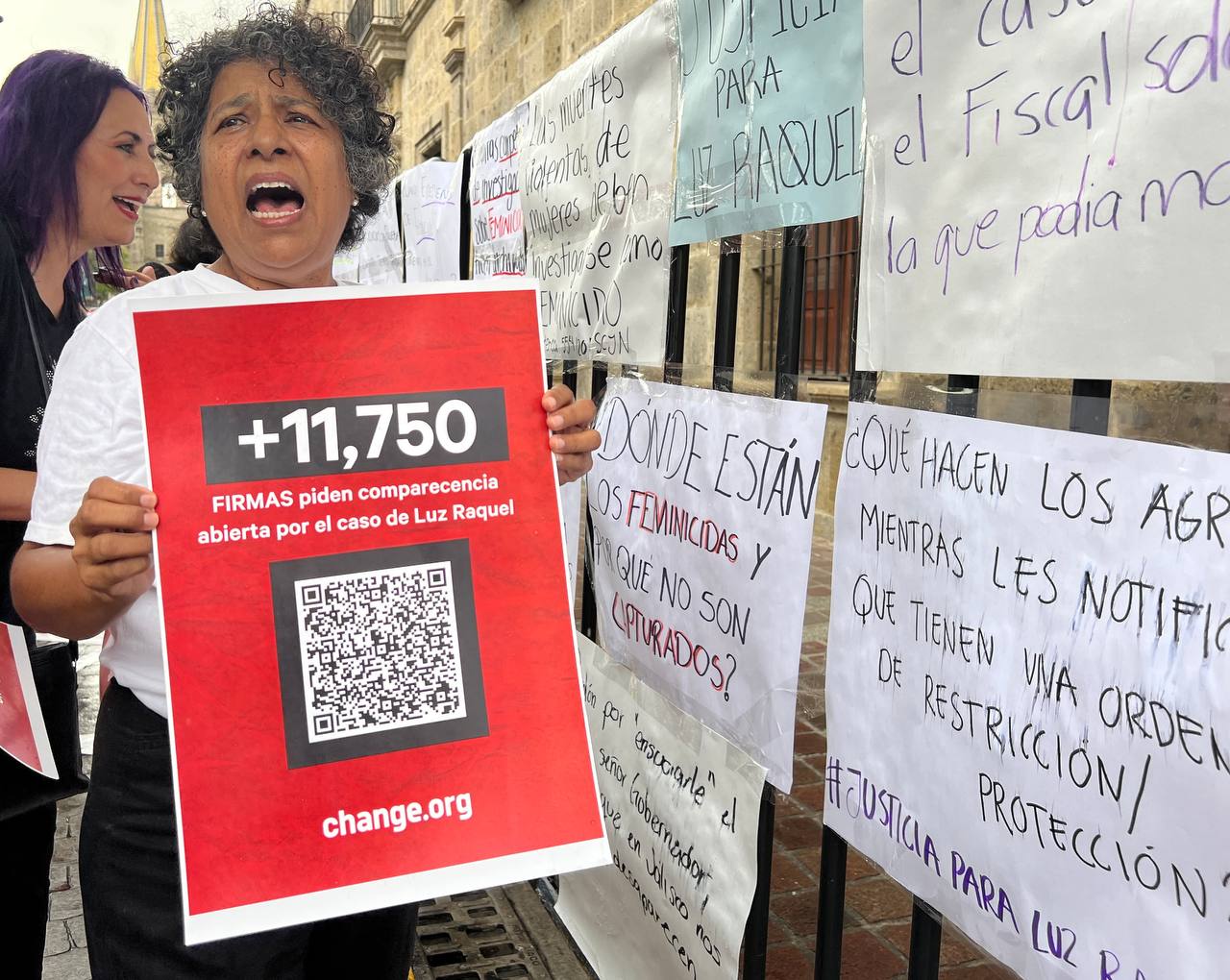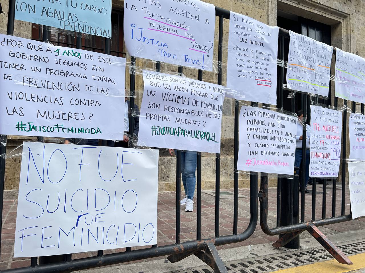 A las afueras del Congreso no se pensaba lo mismo, pues con múltiples cartulinas decenas de mujeres expresaron su indignación por el actuar del Estado en el feminicidio de Luz Raquel ocurrido hace casi dos meses. Para mostrar su repudio, además, colocaron letras de gran tamaño con la consigna: “Jalisco feminicida” y una lona en la que podía leerse: “Aquí es la comparecencia secreta del Fiscal, pase usted”.