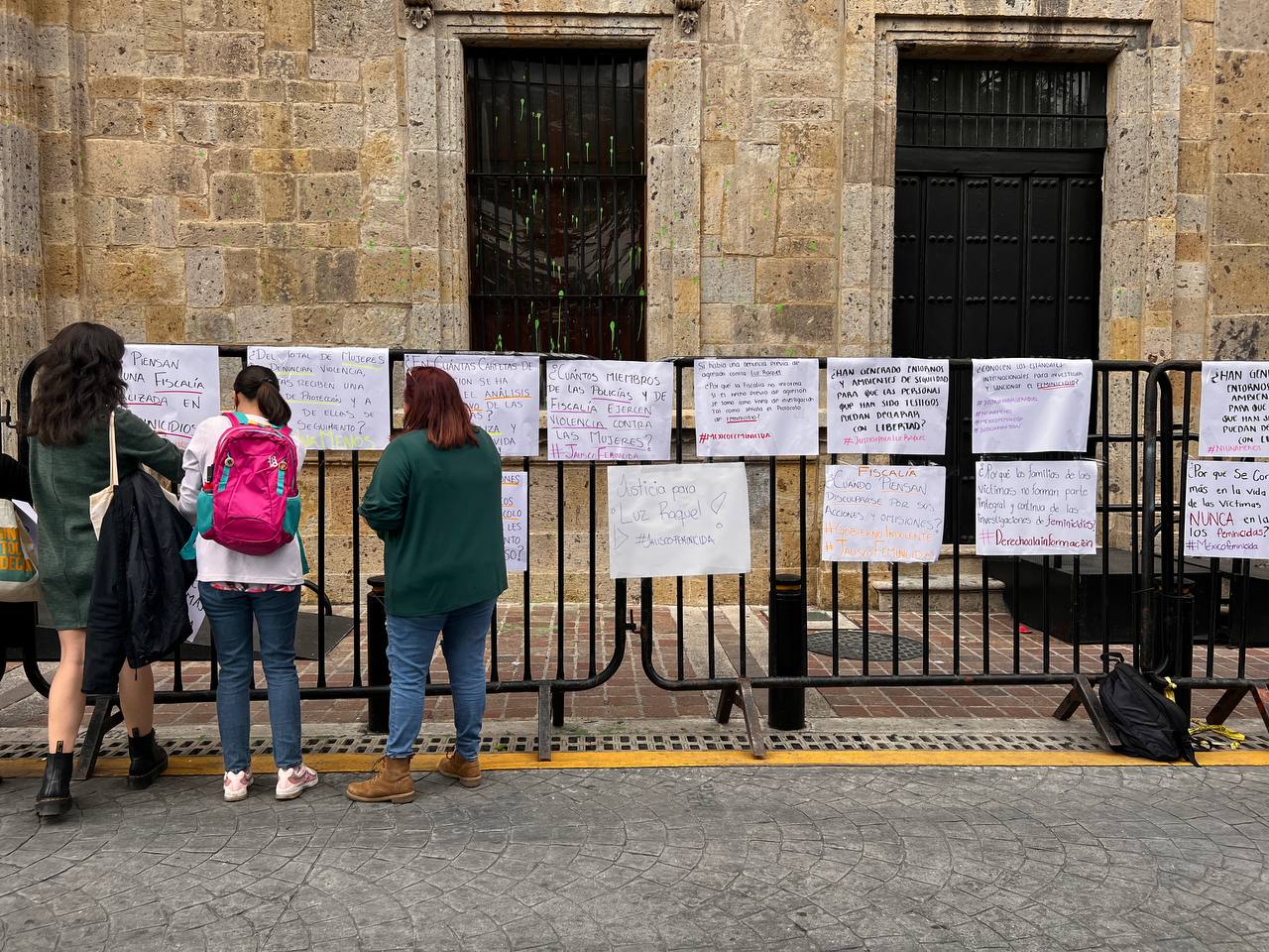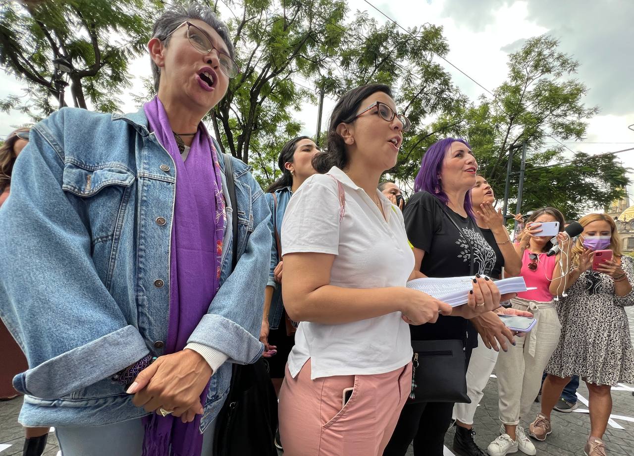 Fueron las activistas del Comité de Latinoamérica y el Caribe para la Defensa de los Derechos de la Mujer Jalisco (Cladem Jalisco) quienes, en representación de las manifestantes y aquellas personas que firmaron, entregaron el paquete a través de las vallas que fueron colocadas para no incomodar a las autoridades..