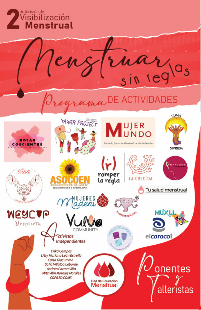 En esta segunda edición, la Red de Educación Menstrual -organización de mujeres involucradas en el activismo y educación menstrual- “buscan unir proyectos y acciones que promuevan el derecho a una menstruación digna en ámbitos como la salud, la educación”, así comenta Laura Lecona, psicologa social que forma parte de la comisión de vinculación de la Red.