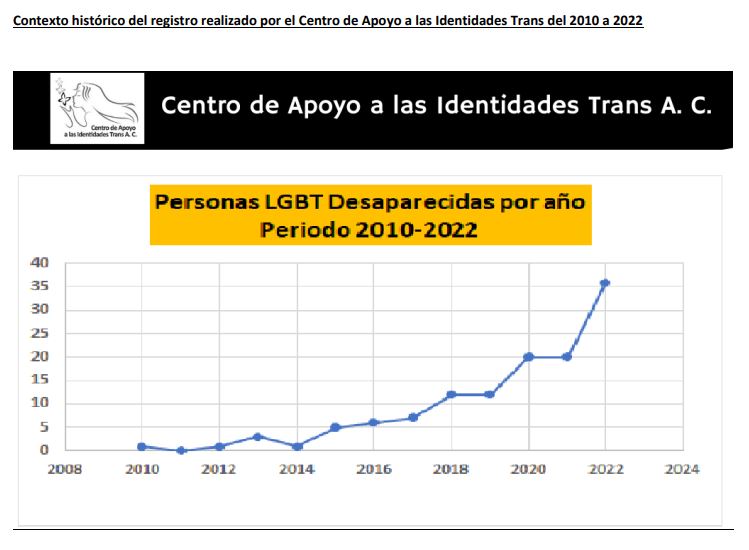 “Esto no quiere decir que no existan casos de desapariciones de personas LGBT antes de estas fechas” señalan, y es que reconocen que, por ejemplo, “existe un vacío histórico en la desaparición de mujeres trans trabajadoras sexuales en diferentes periodos de la historia reciente del país”.
