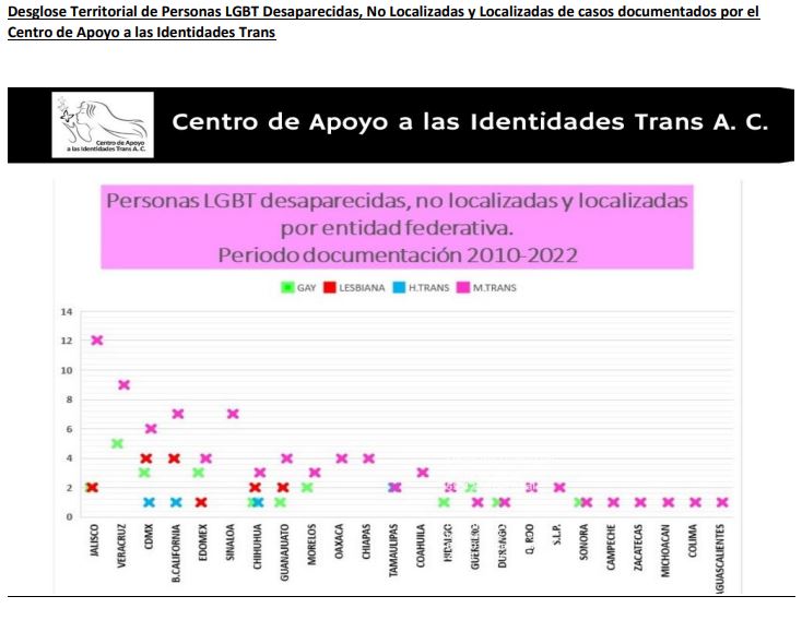 A través de estas historias, su revisión y contraste con los datos oficiales, el Centro de Apoyo a las Identidades Trans, afirma que, en la búsqueda de personas de la comunidad LGBTTTIQ+ que han sido víctimas de una desaparición, el Estado Mexicano: