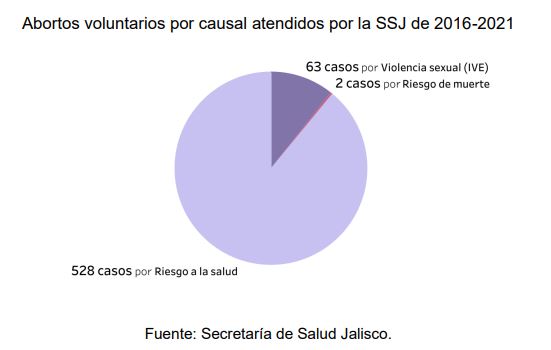 Durante este mismo periodo de tiempo, sólo se registran dos casos de violencia sexual derivados en aborto, uno registrado en Guadalajara y otro en Cocula, atendidos en el Hospital Regional de Cocula y en el Centro de Salud de Guadalajara No. 3. “Eso nos da un panorama, no se está garantizando el acceso al aborto en Jalisco” afirmó Casandra Benavides.