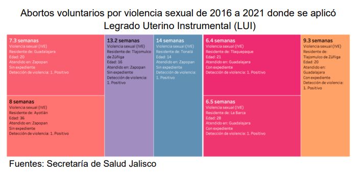 Sin embargo, de 2017 a diciembre de 2021, la dependencia de salud estatal reportó haber realizado 7 abortos por causa de violencia sexual aplicando este método.