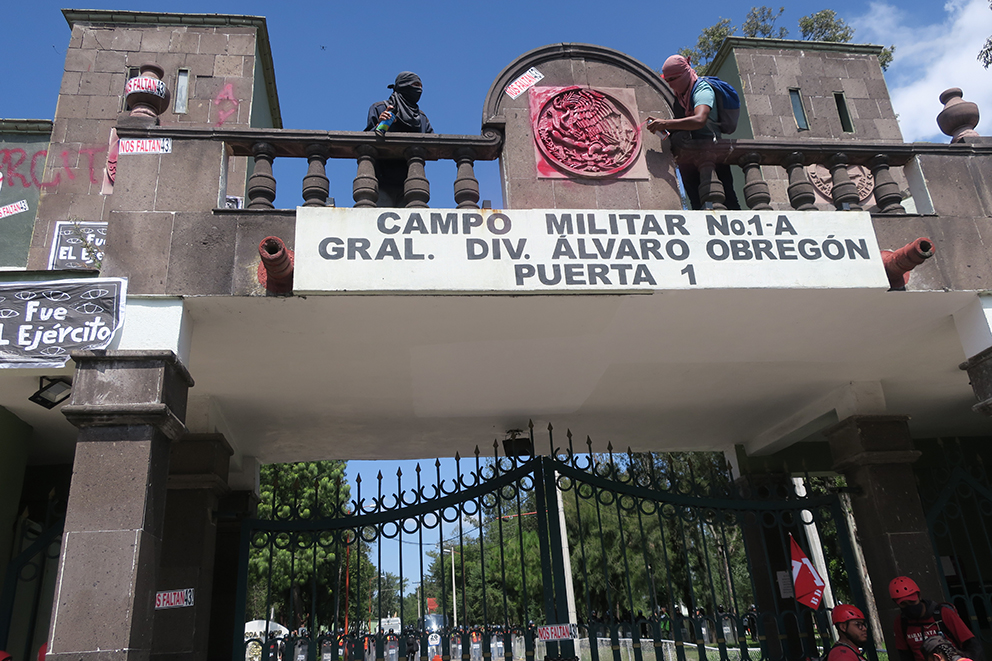 Cuando terminó el ultimo orador en la puerta 1 del Campo Militar número 1-A, los normalistas garabatearon las paredes de la unidad castrense. “Fue el Ejercito” se lee en la fachada principal. “Desencuartelen la información” escribieron a un costado de la entrada peatonal de los militares.