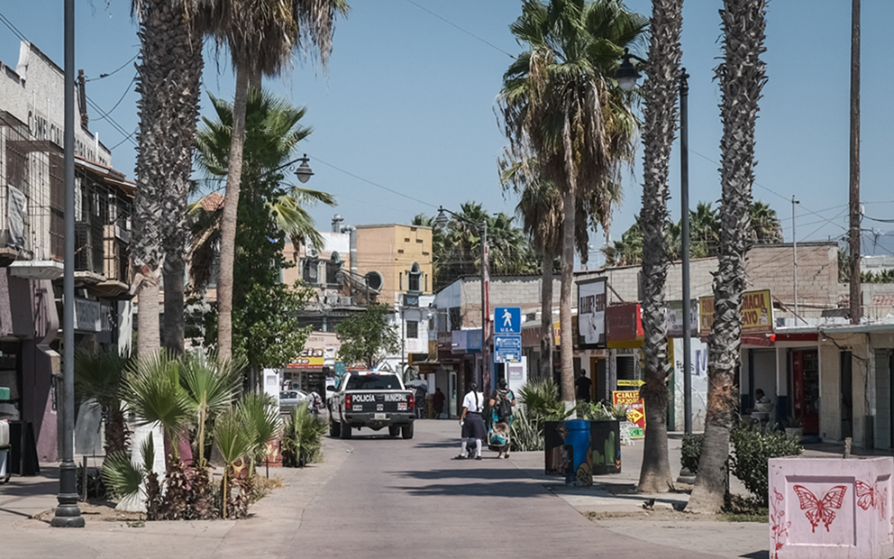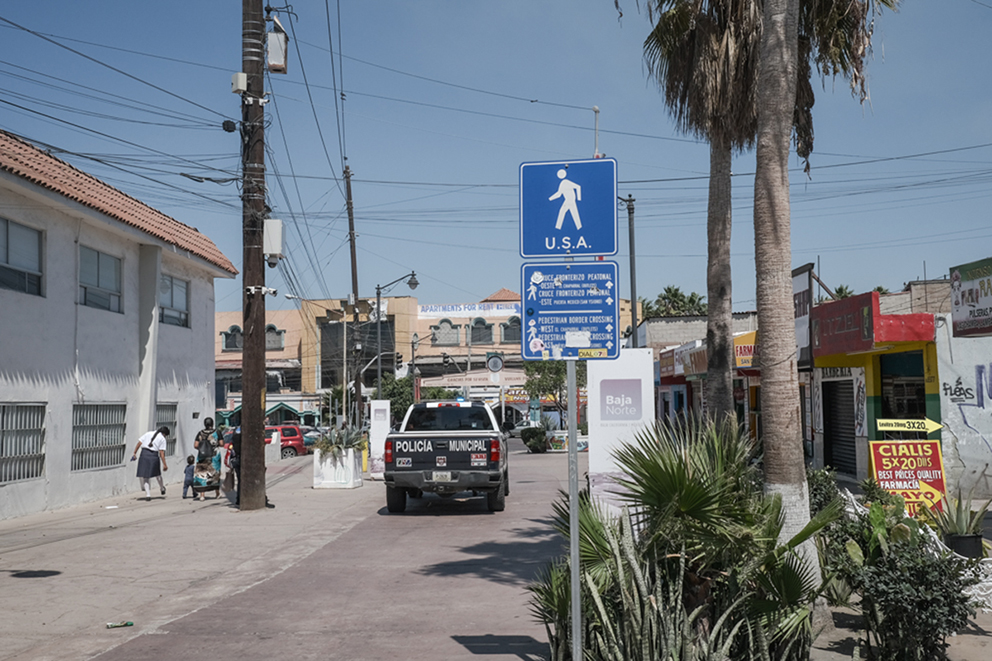 De fondo se mira a la muchedumbre sobre la mítica Avenida Revolución, donde el calor no parece importar mucho. Turistas recorren las aceras buscando algún lugar para pasar la tarde. Usan gafas oscuras y sombreros para cubrirse del sol. El paisaje sonoro revela la multiculturalidad de este lado de la frontera, con una mezcla entre español e inglés que se entona desde diferentes acentos. Las noches, aunque calurosas, siguen siendo de los bares y la calle que nunca duerme.