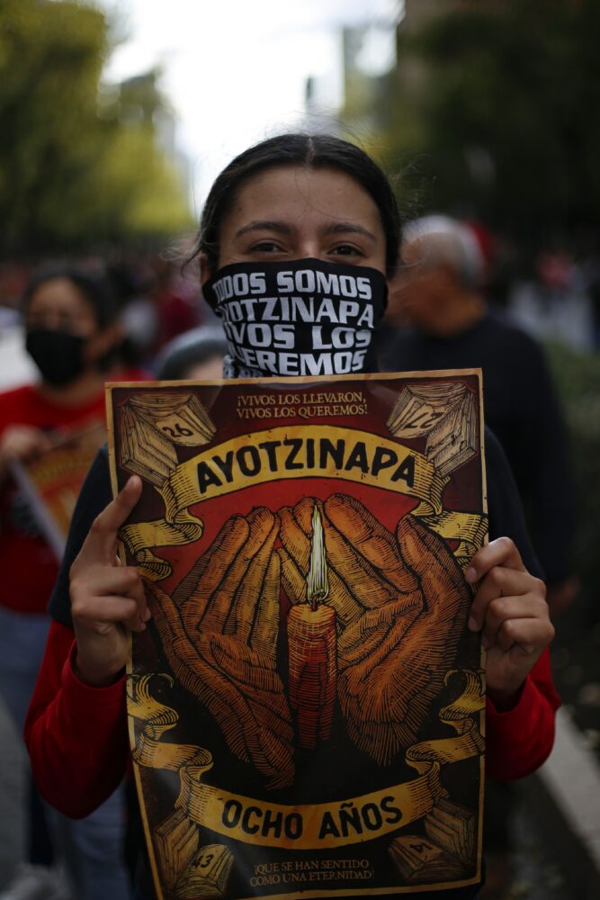 Pese a la información filtrada a algunos medios de comunicación y la contenida versión pública dada a conocer por la Comisión de la Verdad para el Caso Ayotzinapa, familiares de los 43 estudiantes de la Normal Rural “Raúl Isidro Burgos” de Ayotzinapa y compañeros normalistas tomaron nuevamente las calles de la Ciudad de México para mantener viva su exigencia de búsqueda y verdad histórica, esto en el marco de los ocho años de la desaparición forzada de los 43 estudiantes y del asesinato de sus cuatro compañeros.