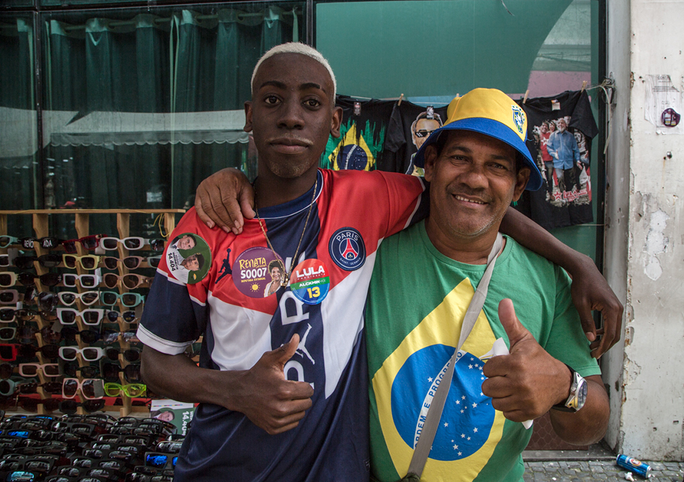 Este es un lugar con una presencia amplia del bolsonarismo, se nota en las camisetas amarillas que lleva la gente en las calles o en los miles de stickers con la cara del presidente y su número en la boleta. Se nota en las fiestas a todo volumen que se hacen afuera de los centros de votación, en el ambiente intimidante a pesar de la música y el olor a churrasco. Toda la gente está tomando o cerveza o cachaÇa y no se muestran contentos ante la cámara fotográfica.