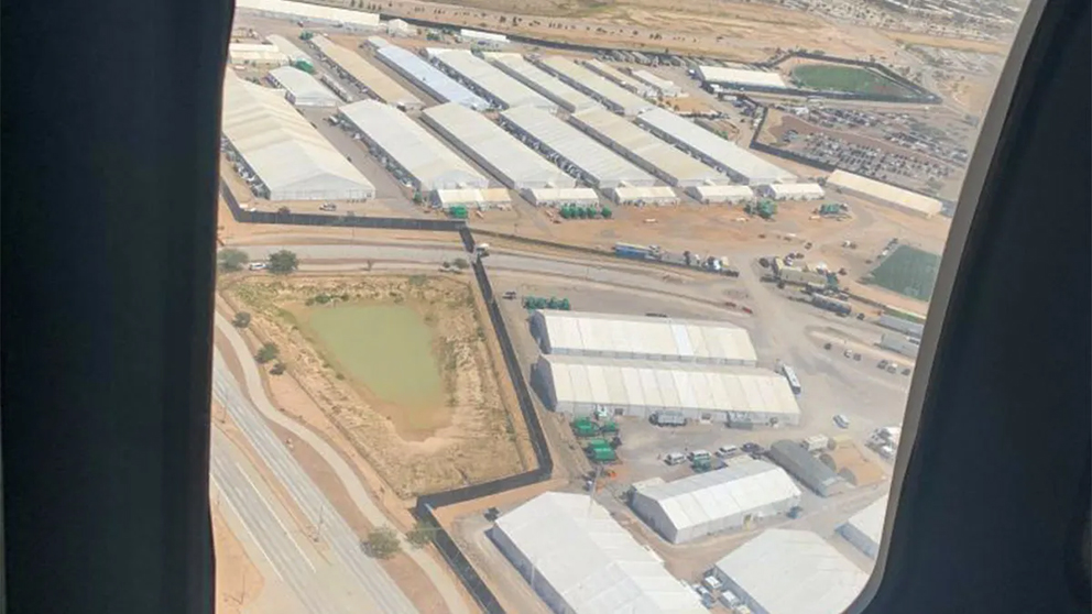 La instalación, tiendas de campaña del tamaño de un almacén repletas de filas de literas similares a catres para niños de 13 a 17 años, está a cargo de un proveedor de servicios de refugio de emergencia bajo un contrato federal, aunque no se menciona su nombre en el informe.