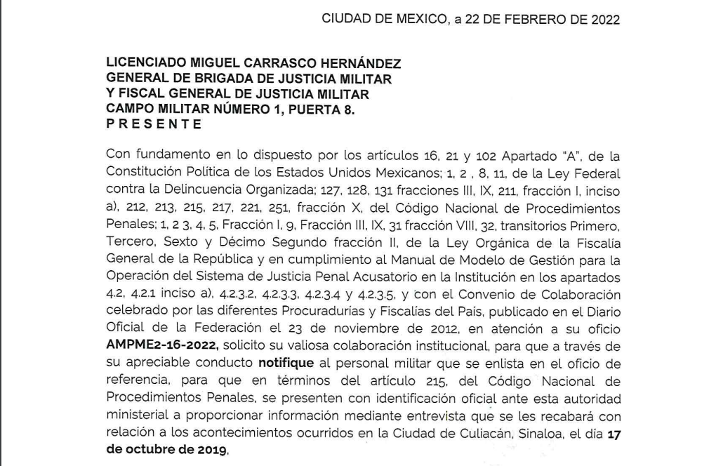 La Fiscalía General de la República solicitó la comparecencia de los siete elementos para que declararan sobre los hechos ocurridos el 17 de octubre de 2019.