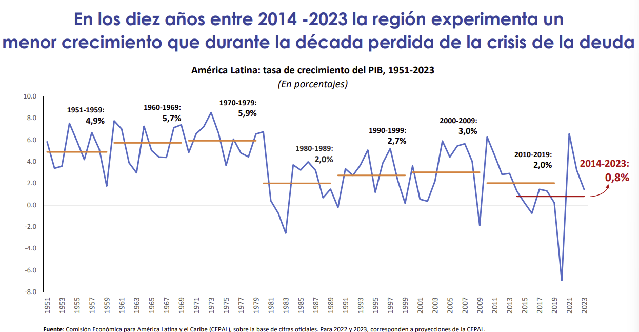 El panorama que se enfrenta en toda la región es sombrío, ya que la última década estuvo marcada por un pobre desempeño en el desarrollo en la región y una profundización de las brechas sociales y económicas, marcada por la cascada de crisis provocada por la pandemia de covid-19 y posteriormente la guerra en Ucrania.
