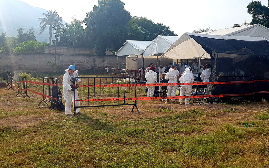 JOJUTLA, MORELOS.- Peritos, arqueólogos y ministerios públicos de la Fiscalía General de la República (FGR) y la Fiscalía Estatal del Estado de Morelos (FGE) se reúnen alrededor de la zona cero de las fosas de Jojutla y conversan por un largo tiempo. De pronto se escuchan aplausos.