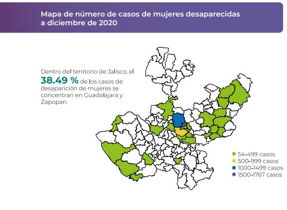 Jalisco, además de ser una de las ocho entidades que concentran en el país el 56% de las desapariciones, es la primera a nivel nacional con mayor incidencia del delito y la cuarta en el caso de mujeres jóvenes y niñas desaparecidas.