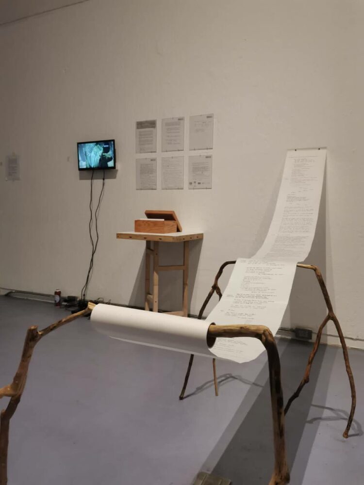 También, se encuentra el trabajo artístico y de activismo de Laura Valencia, quien ha acompañado a las familias pescadoras desde hace diez años. La pieza es una fotografia de un monumento realizado con unas madejas cubiertas de hilo negro – que se midieron a partir del índice de masa corporal del volumen de las personas que estaban desaparecidas – realizado por familiares y estudiantes y activistas.