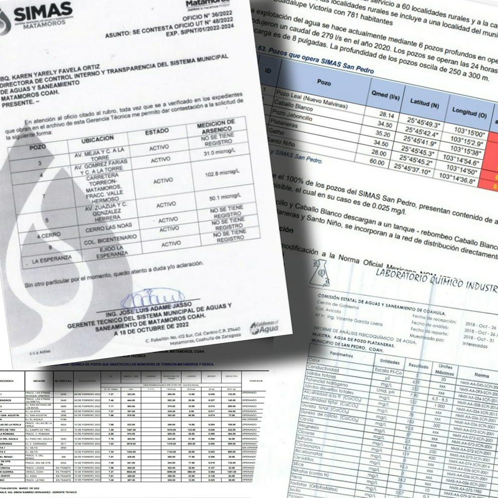 El SIMAS Rural (que abarca parte de los municipios de Torreón, Matamoros y Viesca) contestó con las instrucciones para buscar estos documentos dentro de su apartado obligatorio en el Instituto Coahuilense de Acceso a la Información (ICAI). Los datos disponibles a marzo de 2022 marcan que 12 de sus 19 pozos rebasan la norma oficial vigente.