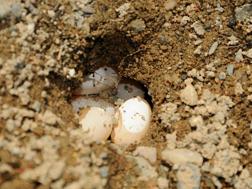Enterrados a más de 40 centímetros, éstos deberían eclosionar en un periodo aproximado de 50 días, para cumplir con el ciclo de reproducción de esta especie que se encuentra en peligro crítico de extinción, según la Lista Roja de la Unión Internacional para la Conservación de la Naturaleza.