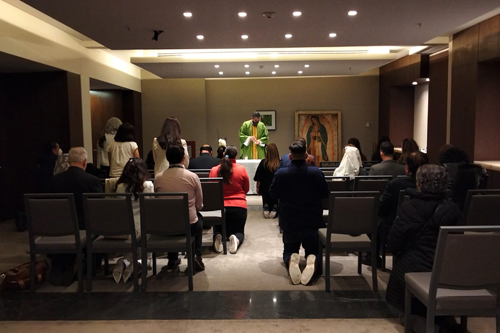 Antes de iniciar con los trabajos, la CPAC ofreció una misa católica en un salón del hotel: el salón Cerezo. Su tamaño no es muy grande, y hay pocas sillas en la habitación. La gente llega y se sienta, otros tantos se quedan de pie al fondo. Frente a ellos, un altar improvisado sostiene una biblia, un cáliz y ostias. Llegan un sacerdote y un sacristán.