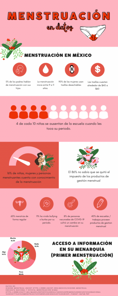 En México las clases de salud sexual no suelen abordar la menstruación más allá del embarazo y la única manera en que se enseña, suele ser en espacios separatistas, únicamente de niñas. Hace falta que se aborden estos temas en clases de educación sexual integral, donde se hable de anatomía y aprender a escucharlo, como se socializan los procesos biológicos y como corporalizarlos.