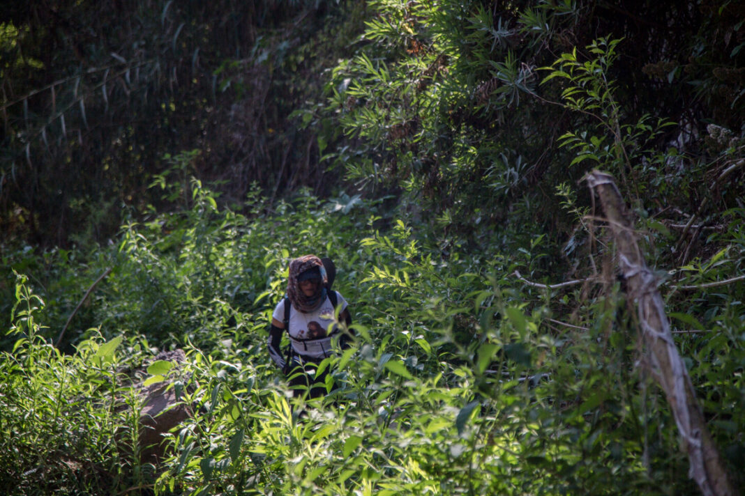 Pasando el mediodía el sol arrecia en todo el estado de Morelos, con el retraso ocasionado por la Guardia Nacional y las policías estatales y municipales, el convoy de la BNB se apresuró a llegar al punto en el que se había acordado realizar una búsqueda. Al llegar se dieron las indicaciones sobre las condiciones geográficas del lugar: habría que descender por una ladera que terminaba en un río que por la temporada de secas no tenía agua. Llegando a este punto caminaríamos buscando en las laderas y a cierta hora se acabaría el rastreo para evitar regresar de noche al hospedaje de la Brigada.