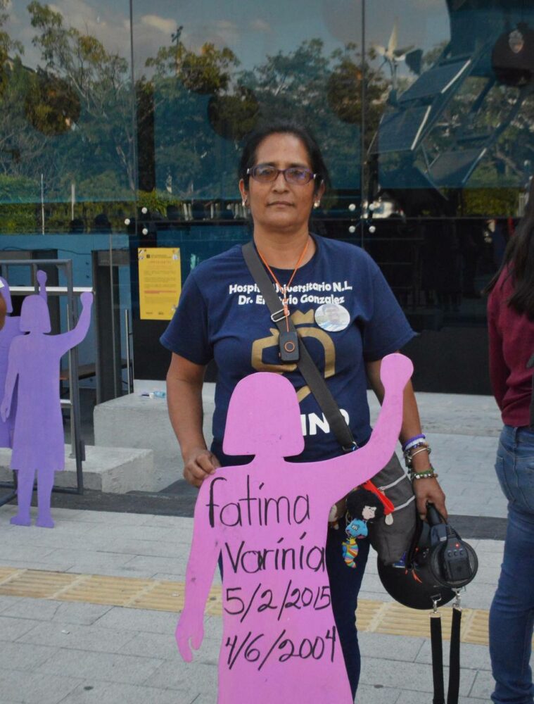 Desde Monterrey, viajó Lorena Gutiérrez, madre de Fátima Varinia Quintana Gutiérrez quien a los 12 años fue víctima de feminicidio por parte de unos vecinos y enterrada a unos metros de su casa el 5 de febrero de 2015, en la comunidad de Santa María Zolotepec del Estado de México.