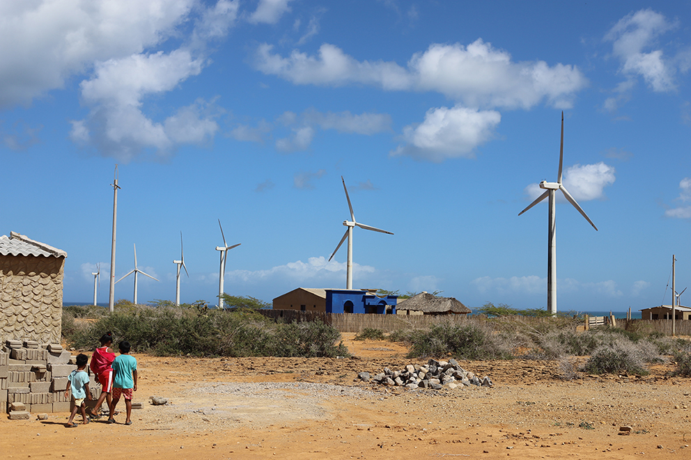 Las rancherías de las comunidades indígenas Wayuú se han llenado de torres de medición del viento, siguiendo una narrativa que concibe a la Guajira como un territorio desértico en el que se puede concentrar la producción de energía «limpia». Las grandes parcelas de tierra que se consideran deshabitadas son en realidad parte de una complicada red social y productiva.