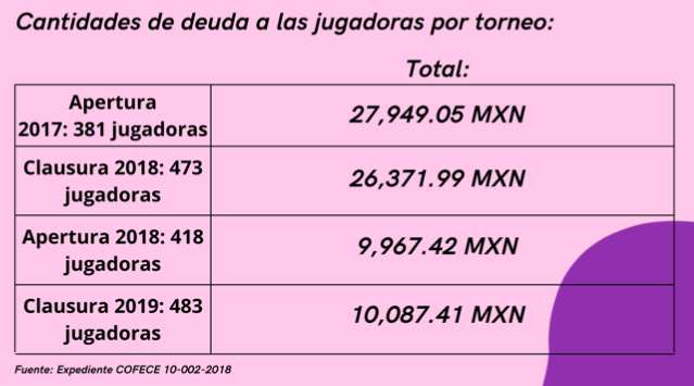 Una deuda que hasta el día de hoy, jamás ha sido recompensada a las jugadoras, pues la propia COFECE solamente multó a los clubes, pero ya no dio seguimiento a la reparación del daño.