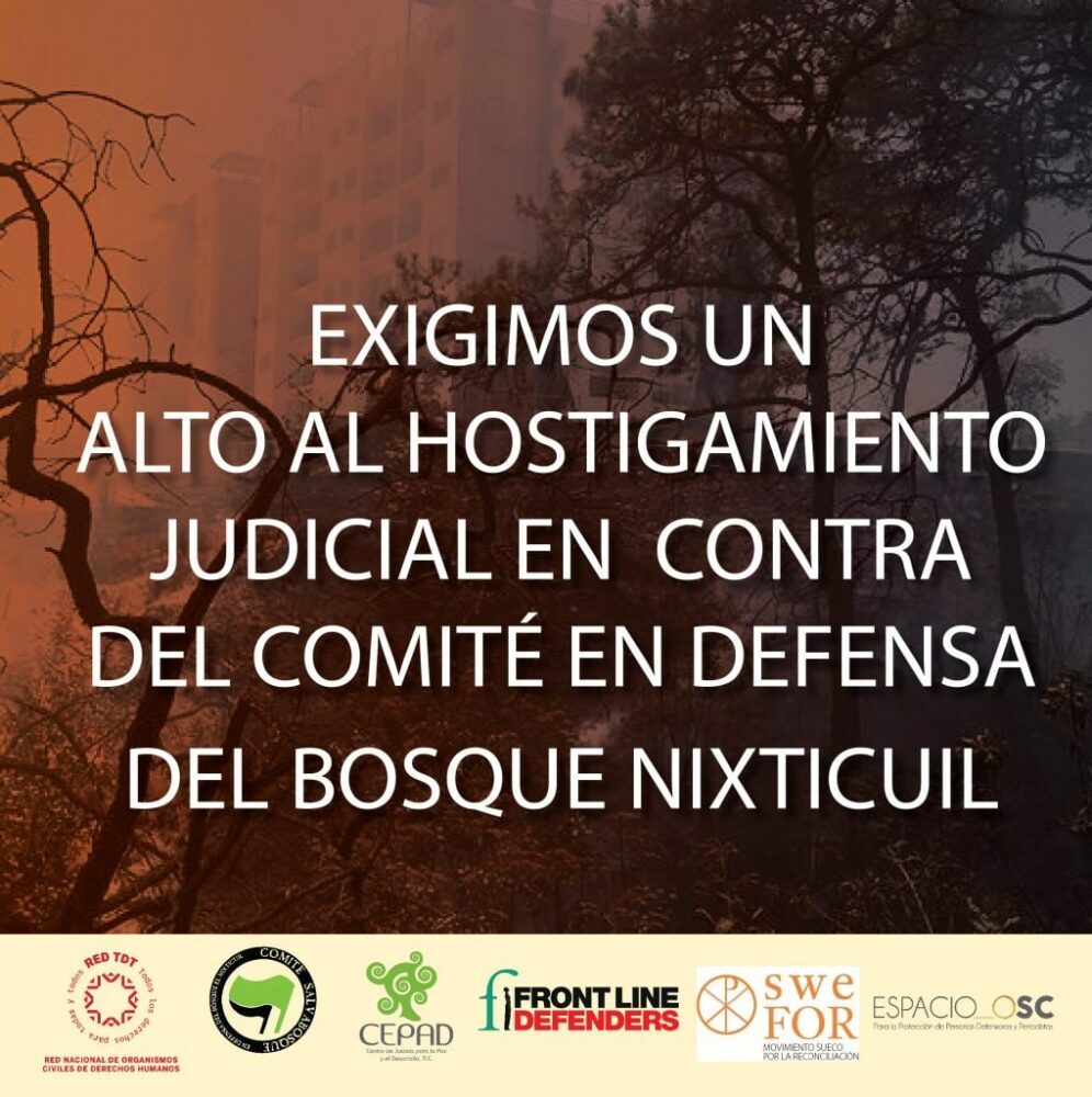 “Tanto la Fiscalía General de la Republica como el Poder Judicial de la Federación están haciendo uso faccioso del sistema de justicia para iniciar procesos judiciales en contra de personas defensoras, el Comité Nixticuil es una organización que está conformada por personas defensoras que han reivindicado la defensa del territorio en contra del despojo y la explotación del bosque, en ese sentido nos parece grave el uso indebido del derecho penal en nuestro país para incriminar o por lo menos investigar la labor de defender derechos humanos en México”.