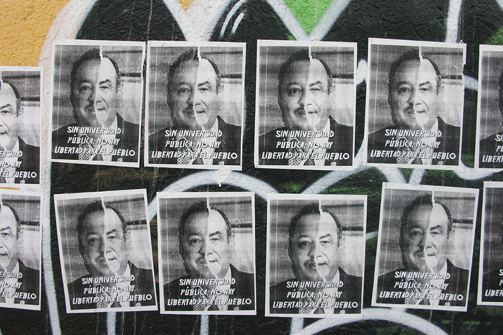 “hay algo más allá del fraude, y eso es la privatización de la única universidad pública del país. Desde 1992 la Universidad ha estado sufriendo una serie de cambios internos orientados a la aplicación de políticas neoliberales en la educación superior”.