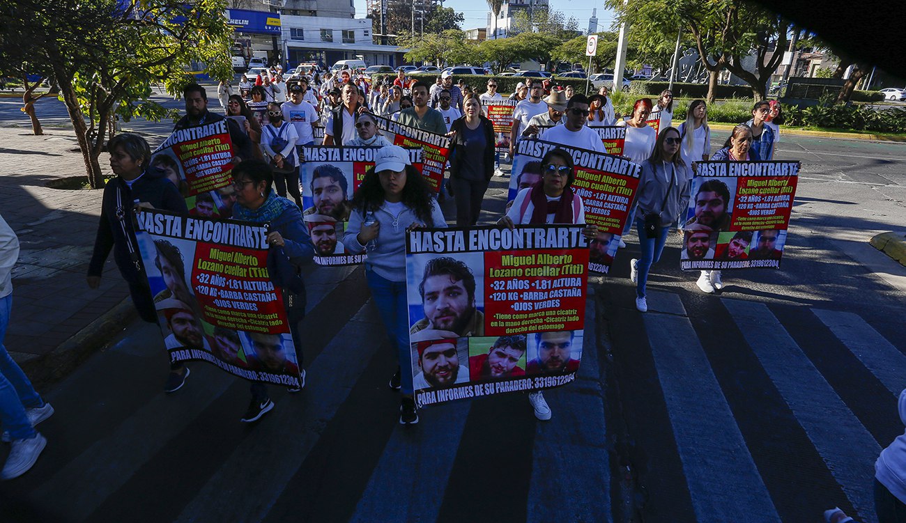 Con las consigna “Titi, hermano, te queremos vivo y sano” y “No estamos completos, nos falta Alberto” familiares y amigos de Miguel Alberto Lozano Cuéllar, desaparecido desde el pasado 20 de enero en Zapopan, marcharon de la Glorieta de La Minerva a Casa Jalisco, para exigir su localización con vida.