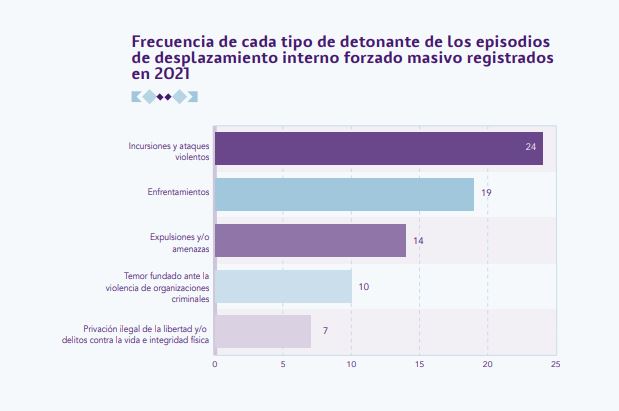 De acuerdo con su informe recién publicado “Episodios de Desplazamiento Interno Forzado Masivo en México”, “al igual que en los años anteriores, en 2021 la principal causa de los desplazamientos masivos en México fue la violencia perpetrada por grupos armados organizados”.