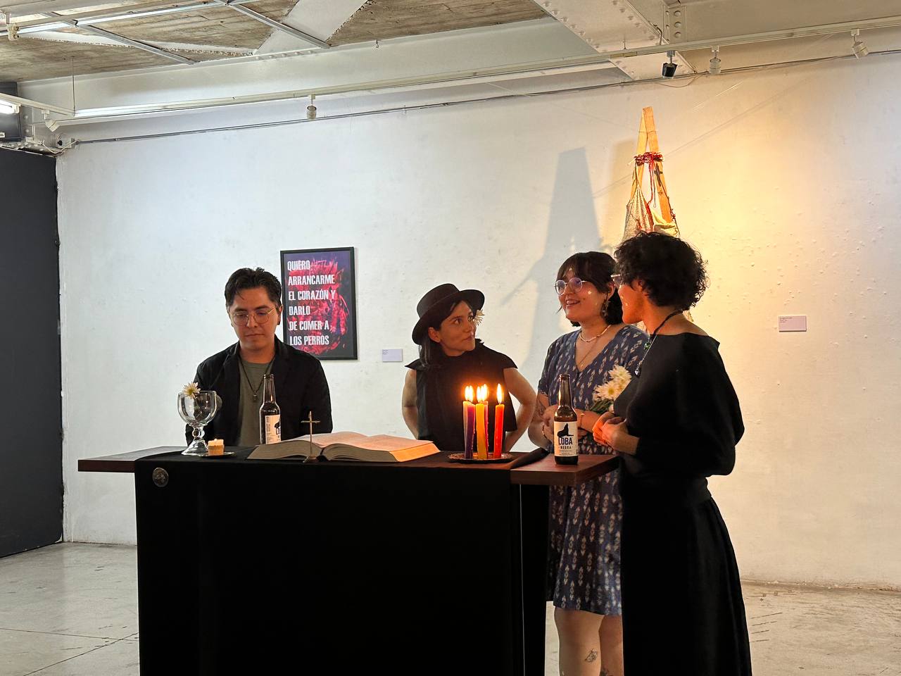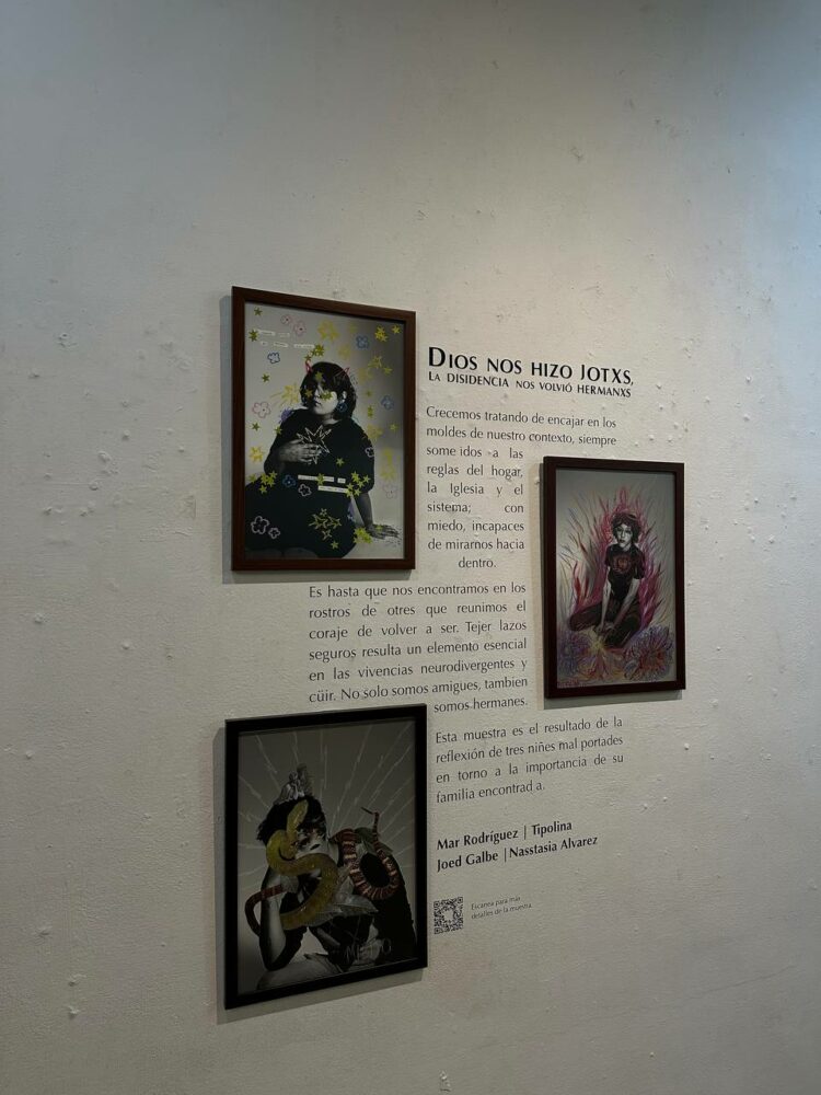 “Dios nos hizo jotxs, la disidencia hermanxs” es el nombre de la exposición artística de Tipolina, Joed Galbe y Mar Rodríguez, su obra comparte los sentimientos que les atravesaron en la niñez y cómo fue crecer en un entorno conservador, católico y heteronormado.