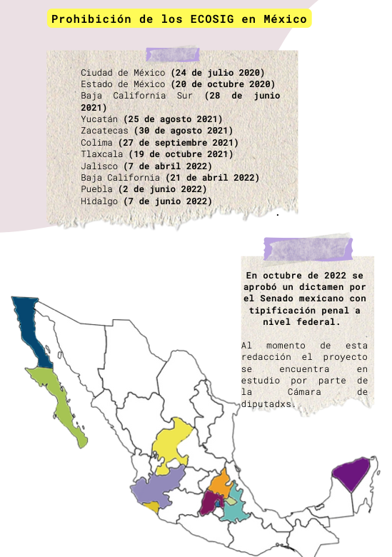 El 11 de octubre de 2022, el Senado Mexicano aprobó el Dictamen que reforma el Código Penal Federal y la Ley General de Salud para prohibir y sancionar penalmente las terapias de reorientación sexual conocidas, también conocidas como Esfuerzos para Corregir la Orientación Sexual y la Identidad de Género (ECOSIG), con ello se busca resarcir el daño causado a la quienes integran la comunidad LGBTTTIQ+.