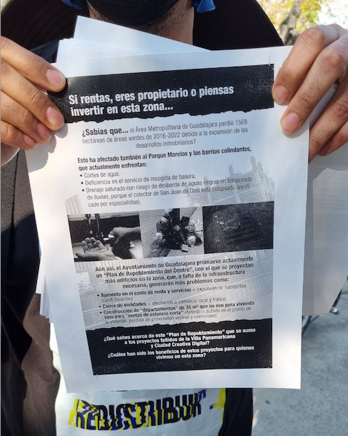 Para hablar de las afectaciones que tiene la gentrificación de la capital de Jalisco, diversos colectivos barriales y vecinales se reunieron en el parque Morelos para hablar de las afectaciones que tiene en la vida de las personas proyectos como Ciudad Creativa Digital y el Plan de Repoblamiento de Guadalajara.