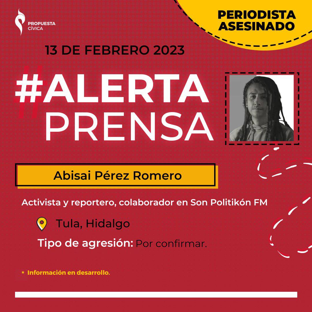 Abisai Pérez Romero, estudiante de la licenciatura en Comunicación y Cultura de la Universidad Autónoma de la Ciudad de México (UACM), colaboraba en varios medios de comunicación donde había documentado los impactos socio-ambientales en la región tolteca del Valle del Mezquital, por lo que no se descarta que su asesinato tenga relación con su trabajo periodístico.