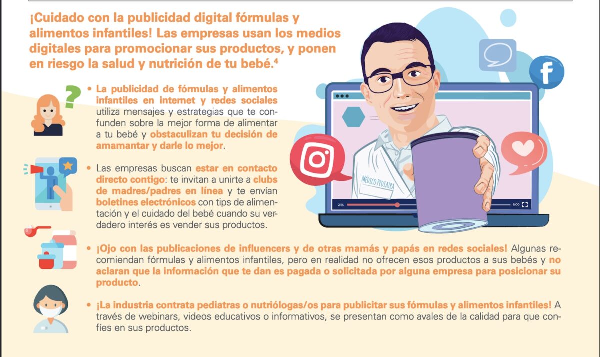 Las madres que están expuestas a un amplio marketing digital tienen menos probabilidades de amamantar de manera exclusiva durante los primeros 6 meses y más probabilidades de dar a sus hijos alimentos procesados y bebidas azucaradas. En México, el 23 por ciento de los bebés entre los 6 y 23 meses consumen al menos un vaso de refresco al día.