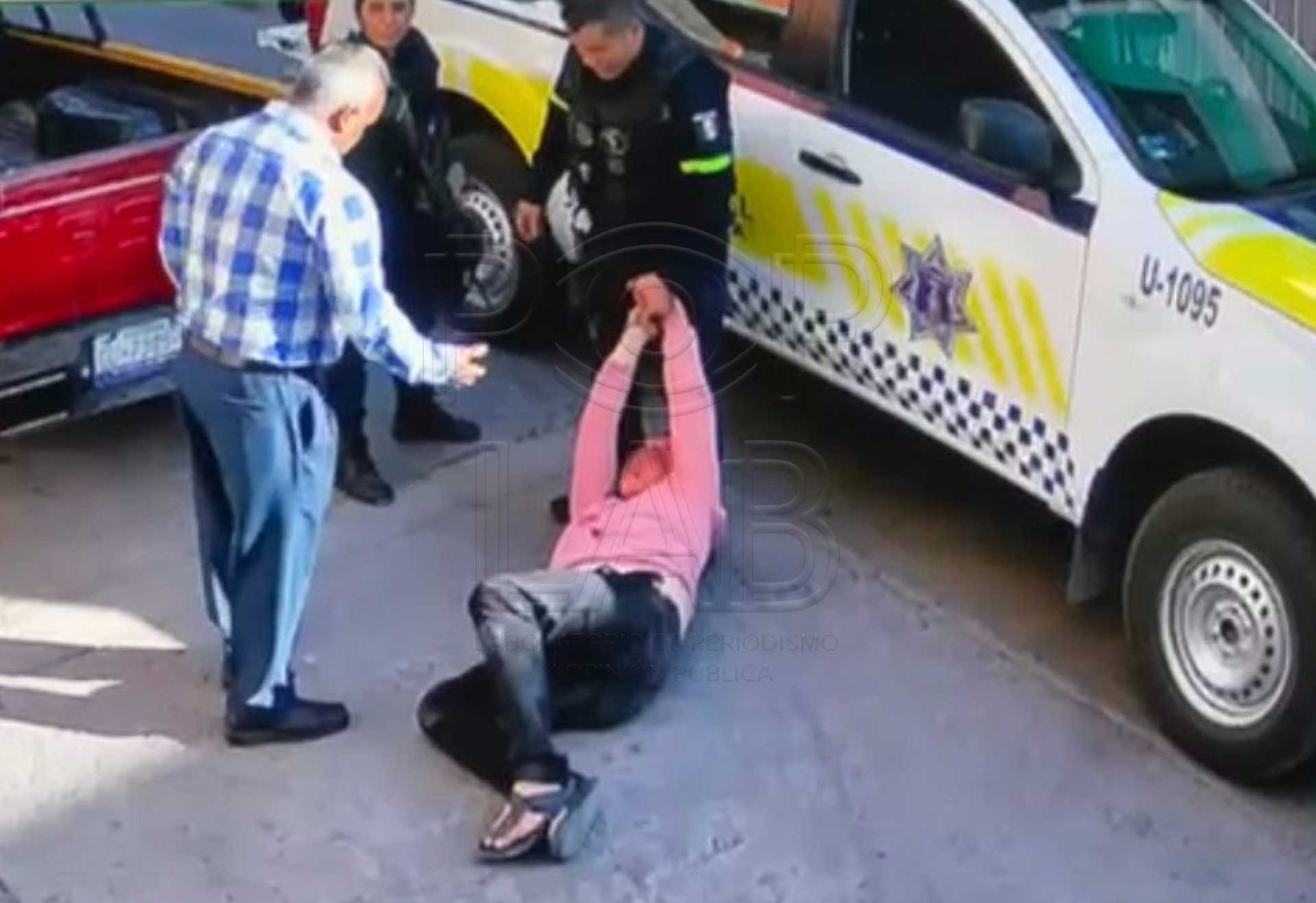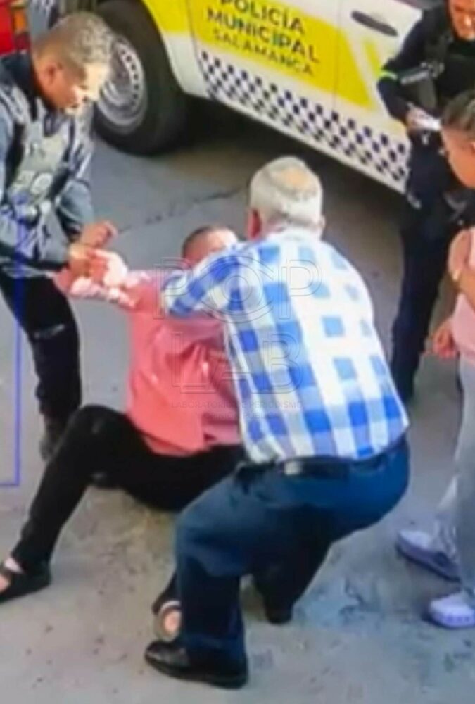 En el video también muestra que a un costado de la unidad U-1095 de la policía municipal de Salamanca, una mujer policía solo observa, sin intervenir, cómo su compañero arrastra a Antonio sin que éste presente oposición alguna.