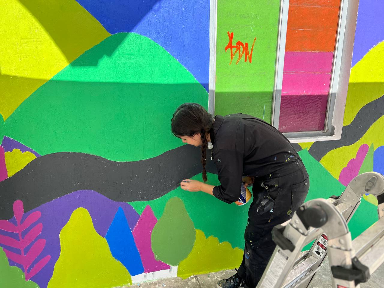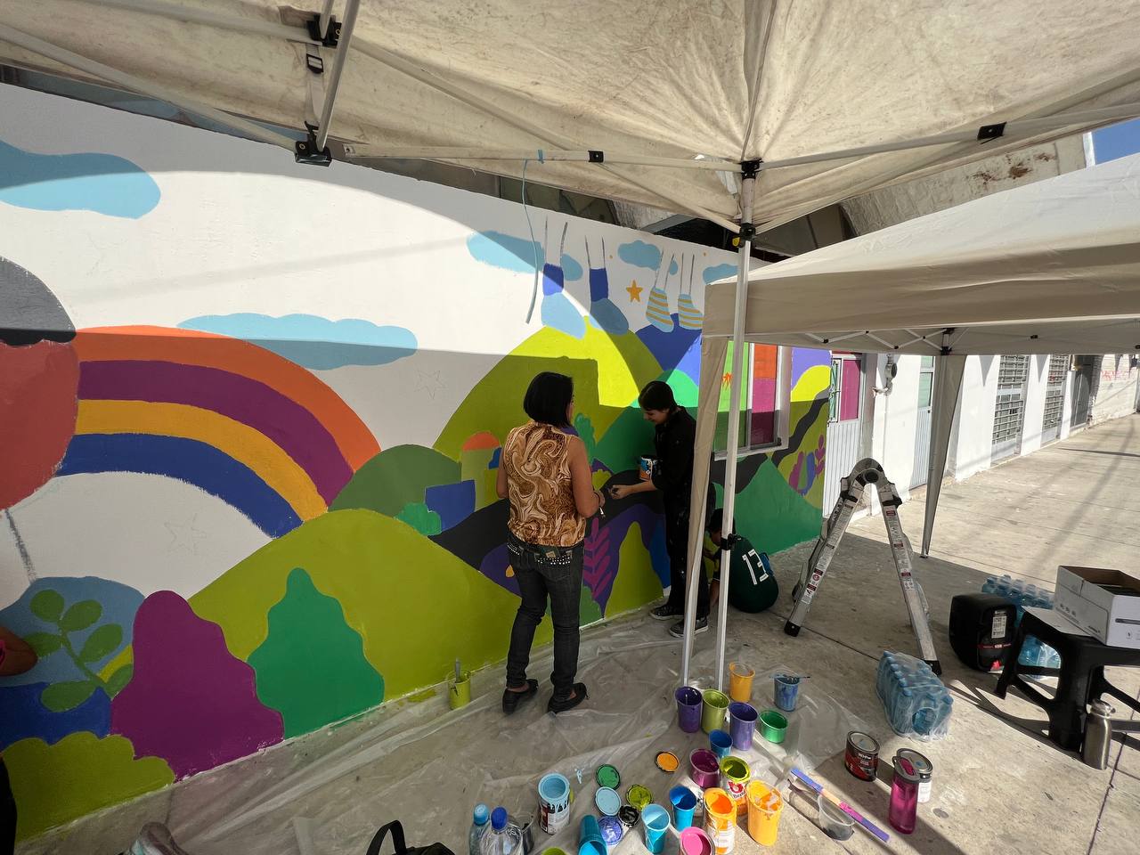 “Fue creado con la participación de un grupo de niñas y niños que acuden a este centro comunitario del DIF, donde pintaron ideas con caminos, naturaleza, el cielo, con lo que ella hizo un collage. Es un mural creado colectivamente y coordinado por la muralista que es quien tiene la experiencia”, añadió Laura Cortés.
