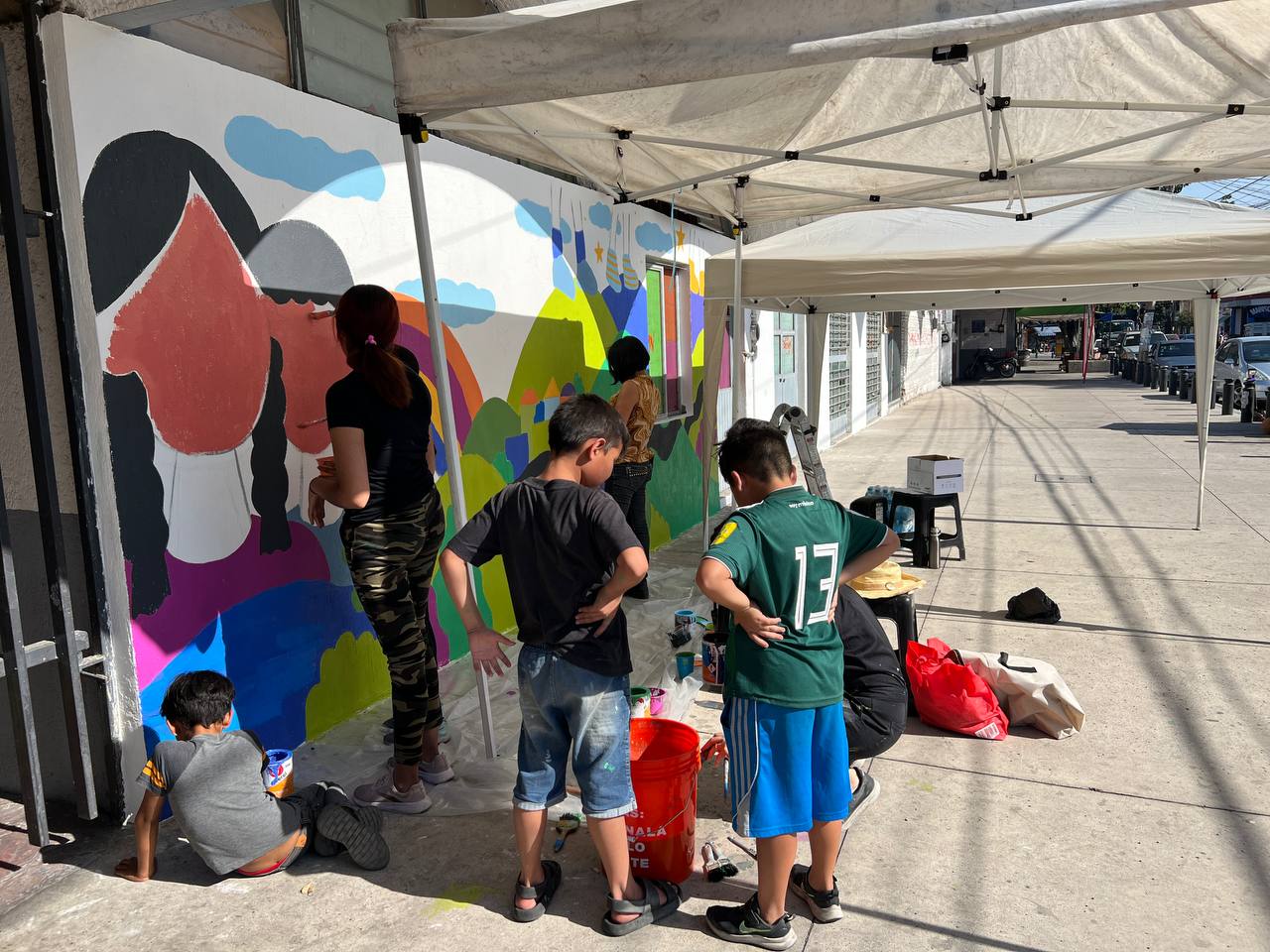 El espacio también fue aprovechado para que la comunidad del Centro de Desarrollo Comunitario del DIF pudiera involucrarse y participar, ya que las y los niños que acuden normalmente realizaron de manera colectiva las ideas para el mismo, acompañados y guiados por la muralista encargada, Aida Caro.