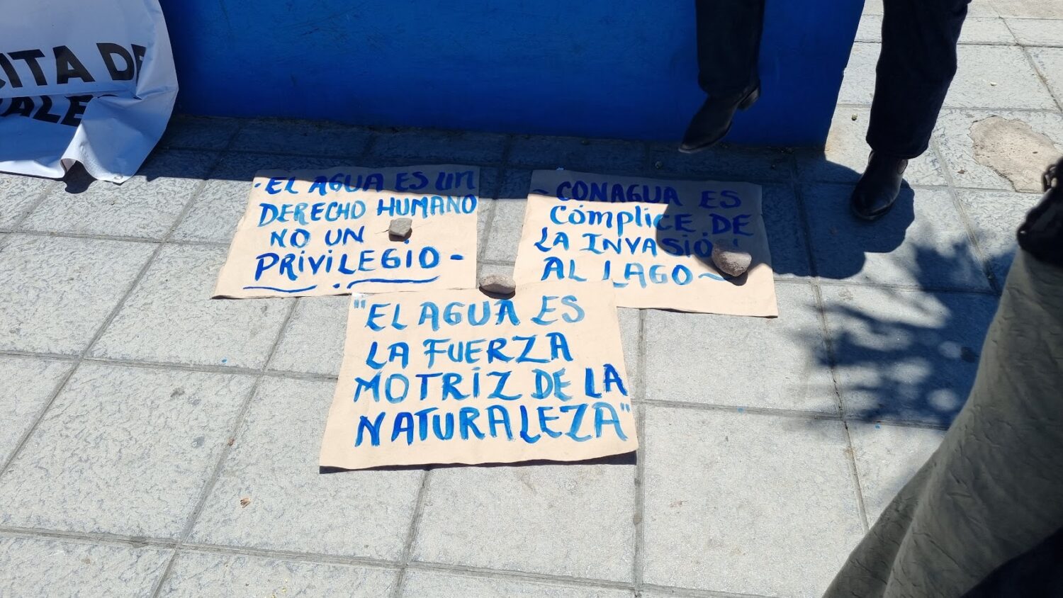 Para conmemorar el Día Mundial del Agua, integrantes de la red de colectivos Pueblos Unidos por la Ribera de Chapala se manifestaron en el malecón de Ajijic, Jalisco, por la privatización del lago más grande del país.