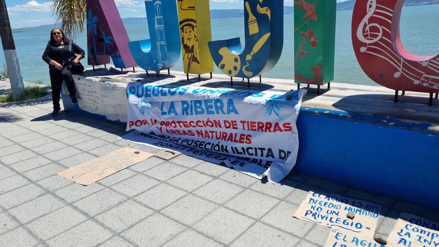 Anticipándose al Día Mundial del Agua -que se conmemora el 22 de marzo-, quienes defienden este territorio aprovecharon la ola turística que inundó, el pasado fin de semana, el malecón de Ajijic para colocar al pie de las “letrotas” del municipio”, una lona que resume sus demandas y resistencias: “Pueblos Unidos por la Ribera: por la protección de tierras y áreas naturales. Contra la posesión ilícita de nuestras áreas naturales y zonas federales”.