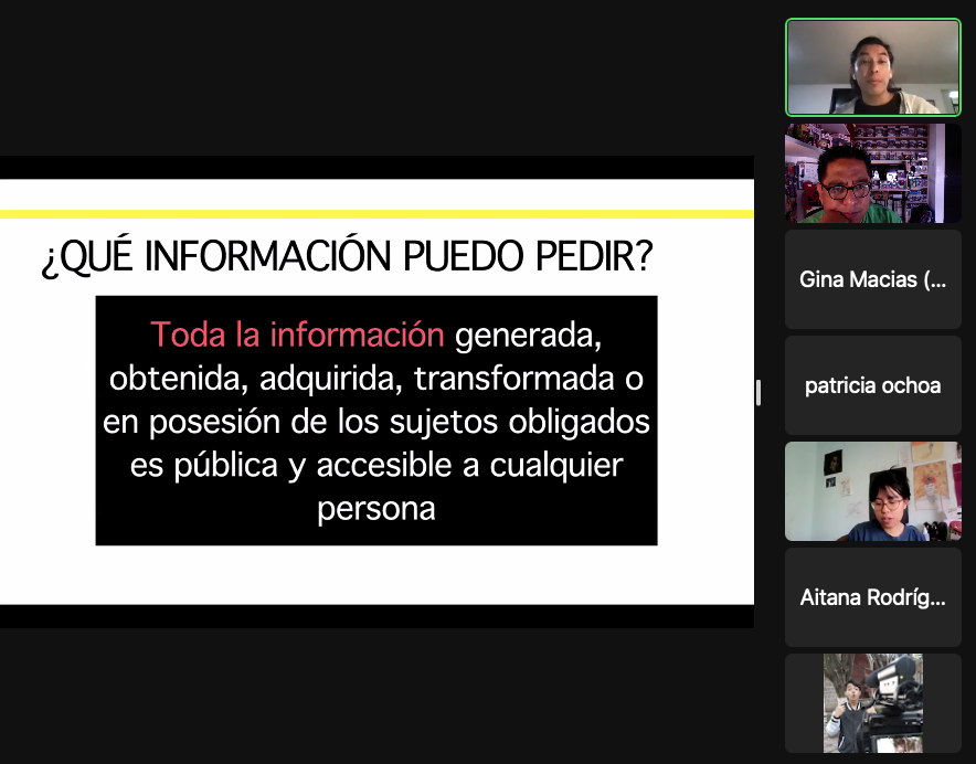 Aprender a realizar buenas y efectivas solicitudes de información es parte elemental del proceso de reportero de todo periodista; por ello, les integrantes de la Escuela de Periodismo de ZonaDocs se capacitaron en el tema con Eira Tzuc, experto en temas de transparencia y acceso a la información.