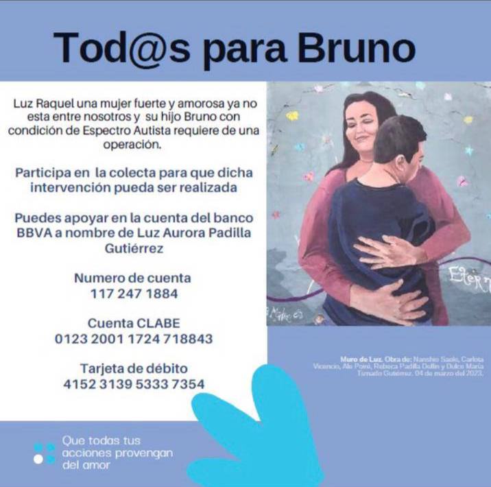 Sin el apoyo de las autoridades competentes para garantizar la salud de Bruno, y tras un doloroso proceso de revictimización e impunidad de las autoridades por el feminicidio de su hermana, Aurora y su familia comenzaron una colecta para reunir los 300 mil pesos que necesitan para llevar a cabo la cirugía.